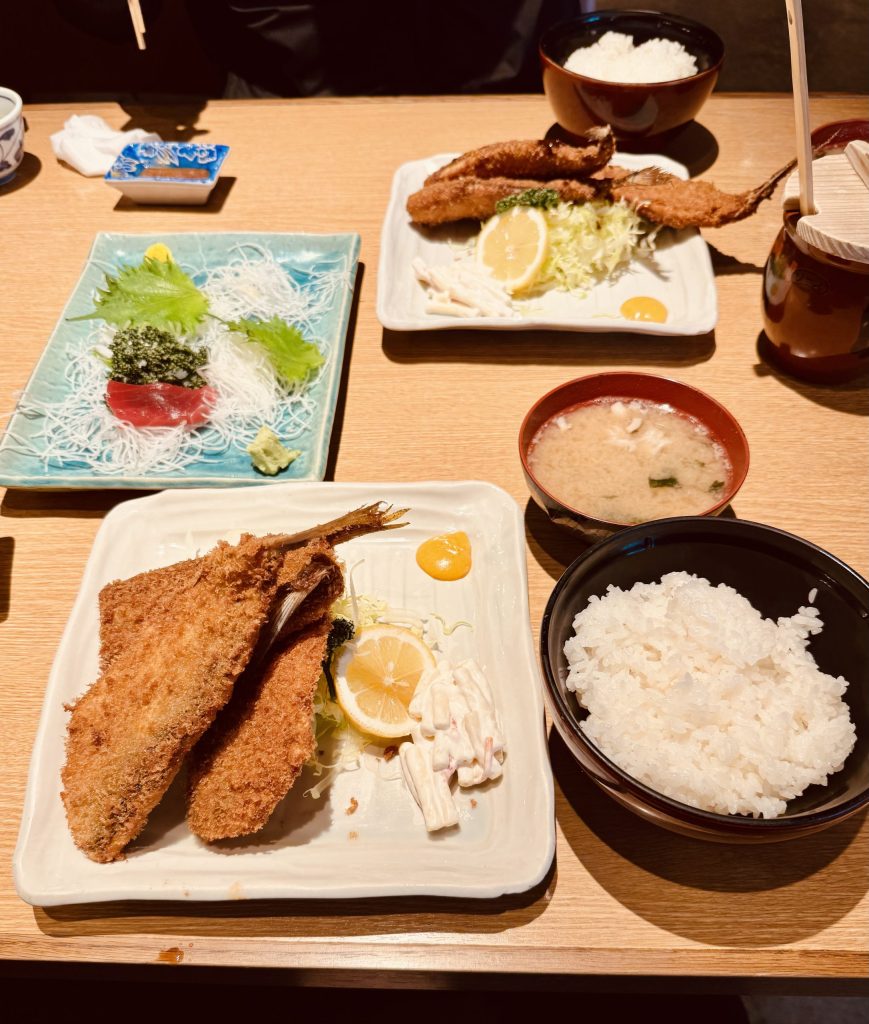 沼津の海の幸、恐るべしです!アジフライと一緒にまぐろの刺身も食べてますね笑