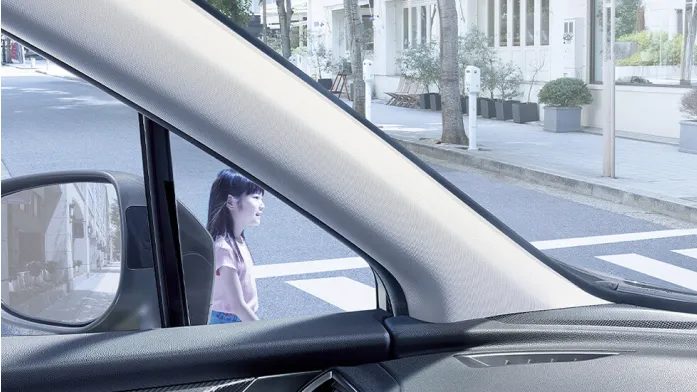 三角窓を設けたり、窓の支柱を細くすることで、死角を少なくしています。
