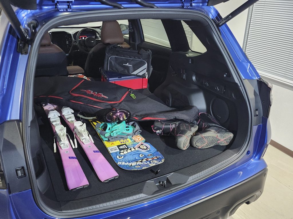 - 積載力もチェック!:スノーボードやスキーの板、ブーツ、大量の防寒具…。すべてを余裕で積み込み、快適に雪山までたどり着けるのがSUBARU車です🚗